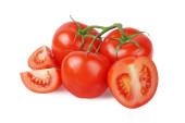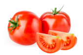 Pomidory w plasterkach, izolowane na białym tle