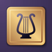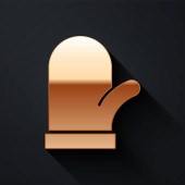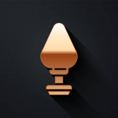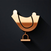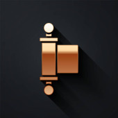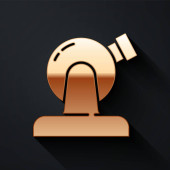 Złota ikona fotela na czarnym tle. Długi styl cienia. Wektor.