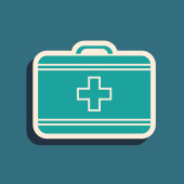 Zdjęcie "Zielony zestaw pierwszej pomocy ikona izolowana na zielonym tle. Skrzynka medyczna z krzyżem. Sprzęt medyczny na wszelki wypadek. Koncepcja opieki zdrowotnej. Długi styl cienia. Wektor" może być wykorzystywane do celów osobistych i komercyjnych zgodnie z warunkami zakupionej licencji Royalty-free. Obraz jest dostępny do pobrania w jakości wysokiej rozdzielczości do 5760x3840.