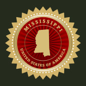 Mississippi stanu złota etykiety z Państwa mapę, ilustracji wektorowych