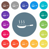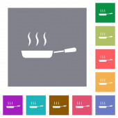Błyszcząca patelnia na parze płaskie ikony na prostych kwadratowych tłach