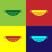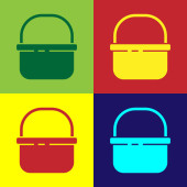 Zdjęcie "Pop art Gotowanie ikona garnek izolowane na tle koloru. Gotować lub dusić symbol żywności. Wektor." może być wykorzystywane do celów osobistych i komercyjnych zgodnie z warunkami zakupionej licencji Royalty-free. Obraz jest dostępny do pobrania w jakości wysokiej rozdzielczości do 5760x3840.