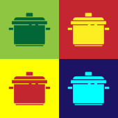 Pop art Gotowanie ikona garnek izolowane na tle koloru. Gotować lub dusić symbol żywności. Wektor.