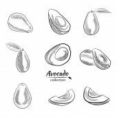 Zdjęcie "Zestaw wektorowy ręcznie narysowany zarys czarnego awokado. Jedzenie ręcznie rysowane wektor ilustracji. Projekt opakowania, wesela, tkaniny, tekstylia, tapety, strona internetowa, pocztówki." może być wykorzystywane do celów osobistych i komercyjnych zgodnie z warunkami zakupionej licencji Royalty-free. Obraz jest dostępny do pobrania w jakości wysokiej rozdzielczości do 5760x3840.