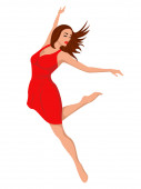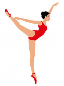Urocza balerina w czerwonej długiej sukience, wektor rysunku dłoni, odizolowana na białym tle