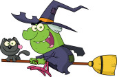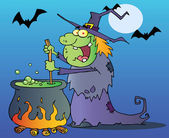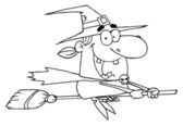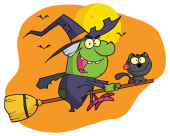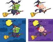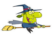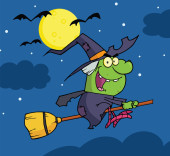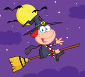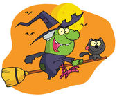 Happy halloween czarownica leci szybko na jej miotły