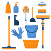 Ilustracja wektorowa różnych atrybutów do czyszczenia