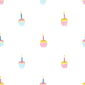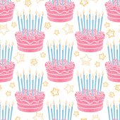 Płynny wzór tortów urodzinowych ze świecami do tekstury, tekstyliów, opakowań i prostych tła. Styl płaski