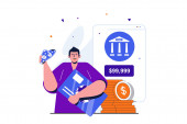 Zdjęcie "Koncepcja bankowości mobilnej w konstrukcji płaskiej. Szablon sceny księgowości finansowej online. Człowiek korzysta z aplikacji mobilnej do operacji bankowych i transakcji. Wektor ilustracja ludzi znaków działalności" może być wykorzystywane do celów osobistych i komercyjnych zgodnie z warunkami zakupionej licencji Royalty-free. Obraz jest dostępny do pobrania w jakości wysokiej rozdzielczości do 5760x3840.