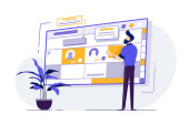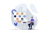 Zdjęcie "Koncepcja optymalizacji Seo w konstrukcji płaskiej. Konfigurowanie szablonu sceny w wyszukiwarce. Facet pracuje na laptopie, promuje stronę internetową, zwiększa ranking ruchu. Wektor ilustracja ludzi znaków działalności" może być wykorzystywane do celów osobistych i komercyjnych zgodnie z warunkami zakupionej licencji Royalty-free. Obraz jest dostępny do pobrania w jakości wysokiej rozdzielczości do 5760x3840.