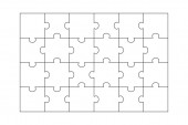 Dwadzieścia sztuk pustych łamigłówek. Puzzle do projektowania stron internetowych, informacji lub prezentacji, infografiki. Białe puzzle na białym tle. Ilustracja wektora