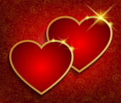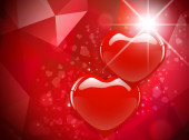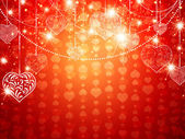 czerwone serce z wstążka łuk nad wakacje czerwone tło z gwiazd i bokeh