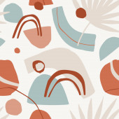 Płynny wzór z abstrakcyjnymi organicznymi kształtami, sercami, ustami. Kolorowe elementy wektorowe w stylu doodle dla tła, tapety, tkaniny, okładka, baner, kartka okolicznościowa. Prosty, zabawny projekt. Nowoczesna grafika na wakacje. Modne teksturowane tło.