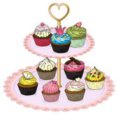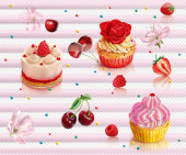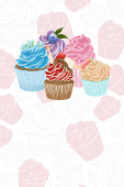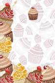 Stylowy szablon do menu cukierni, ozdobiony ilustracjami babeczkowymi z delikatnym tłem