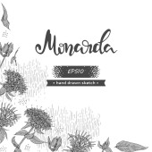 Wrobić Monardę albo Bergamota. Szczegółowe ręcznie rysowane szkice, wektorowa ilustracja botaniczna. Menu, etykieta, projekt opakowania.