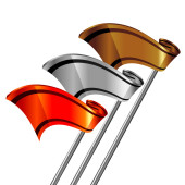 ilustracja zestaw złoto klubów w niebieski i szary worek złota.