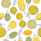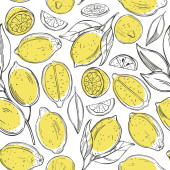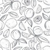 Ręcznie rysowane owoce cytryny na białym tle.Wektor bezszwowy wzór.