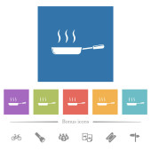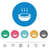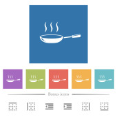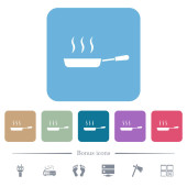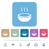 Błyszcząca miska na parze białe płaskie ikony na zaokrąglonych kwadratowych tłach. 6 ikon bonusowych