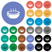Zdjęcie "Parująca patelnia wielokolorowe płaskie ikony na okrągłych tłach. W zestawie białe, jasne i ciemne ikony dla efektów poduszki i aktywnego statusu oraz odcienie bonusowe." może być wykorzystywane do celów osobistych i komercyjnych zgodnie z warunkami zakupionej licencji Royalty-free. Obraz jest dostępny do pobrania w jakości wysokiej rozdzielczości do 5760x3840.