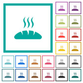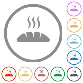 Parująca patelnia wielokolorowe płaskie ikony na okrągłych tłach. W zestawie białe, jasne i ciemne ikony dla efektów poduszki i aktywnego statusu oraz odcienie bonusowe.