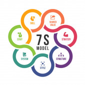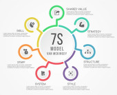 7 's model wykres wykres diagram i znak ikony linii ze strategią, struktura, styl, system, personel, umiejętności i wspólne projektowanie wektora wartości