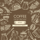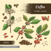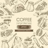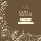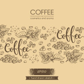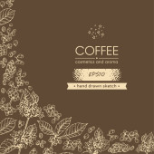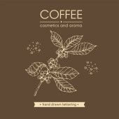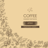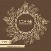Ramka z gałęziami drzewa kawowego i literami kawy w środku. Liniowy szkic ręcznie rysowany, monochromatyczna ilustracja wektora botanicznego.