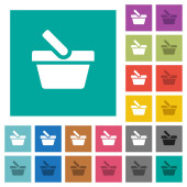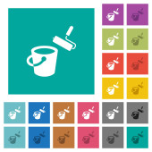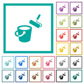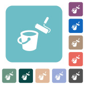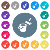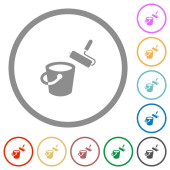 wiadro farby i wałek ciemniejszy płaskie ikony na kolorowe okrągłe tło