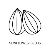 Hand drawn sunflower seeds with shadows. Outline style, vector ink drawing illustration on isolated background.