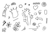 Zdjęcie "ręcznie rysowany zestaw kręconych kołysek, kołysek, kołysek. Streszczenie strzałki, Strzałka, serce, miłość, gwiazda, liść, słońce, światło, korona, król, królowa, na stylu doodle koncepcji projektowania. ilustracja wektora." może być wykorzystywane do celów osobistych i komercyjnych zgodnie z warunkami zakupionej licencji Royalty-free. Obraz jest dostępny do pobrania w jakości wysokiej rozdzielczości do 5760x3840.