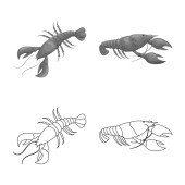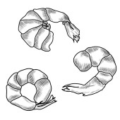 Ręcznie rysowana kolekcja krewetek, smaczne owoce morza