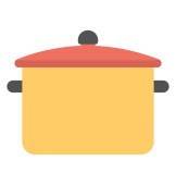 Wektor Ilustracja obrazu garnków gotowania w płaskim stylu izolowane na białym tle. Gorąca kuchnia. Prosta konstrukcja logo.