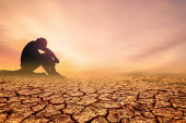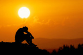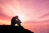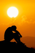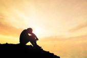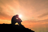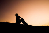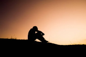 Bezrobotny mężczyzna siedział z głową w dole w rozpaczy..