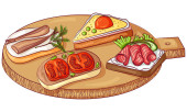 Zdjęcie "Widok góry śniadanie w naczyniu w stylu kreskówki odizolowane ilustracji" może być wykorzystywane do celów osobistych i komercyjnych zgodnie z warunkami zakupionej licencji Royalty-free. Obraz jest dostępny do pobrania w jakości wysokiej rozdzielczości do 5760x3840.