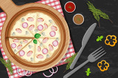 Widok góry śniadanie w naczyniu w stylu kreskówki odizolowane ilustracji
