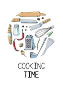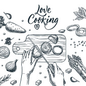 Zestaw elementów kuchennych. Ilustracja szkicu wektora odizolowana na białym tle. Kolekcja narzędzi kuchennych i kuchennych. Ikony bazgrołów dla gospodarstw domowych.
