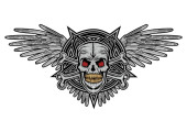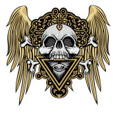 Zdjęcie "Gotycki znak z czaszką i niebieskimi skrzydłami, grunge vintage design t shirty" może być wykorzystywane do celów osobistych i komercyjnych zgodnie z warunkami zakupionej licencji Royalty-free. Obraz jest dostępny do pobrania w jakości wysokiej rozdzielczości do 5760x3840.