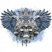 Zdjęcie "Gotycki znak z czaszką i niebieskimi skrzydłami, grunge vintage design t shirty" może być wykorzystywane do celów osobistych i komercyjnych zgodnie z warunkami zakupionej licencji Royalty-free. Obraz jest dostępny do pobrania w jakości wysokiej rozdzielczości do 5760x3840.
