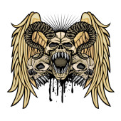 Gotycki znak z czaszką i niebieskimi skrzydłami, grunge vintage design t shirty