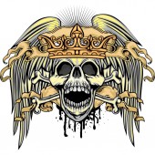 Gotycki znak z czaszką i niebieskimi skrzydłami, grunge vintage design t shirty