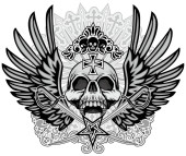 Gotycki znak z czaszką i niebieskimi skrzydłami, grunge vintage design t shirty