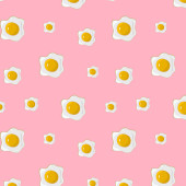 Wektor bezszwowy wzór na temat śniadania z jajecznicą na różowym tle.