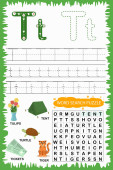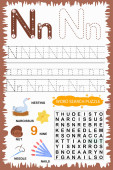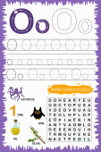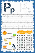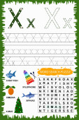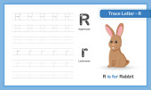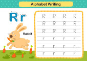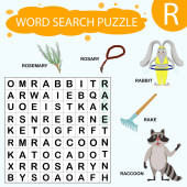 educational worksheet for children learning the English alphabet. Handwriting and crossword puzzle game for memorizing words. Letter R