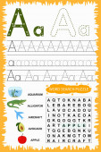 educational worksheet for children learning the English alphabet. Handwriting and crossword puzzle game for memorizing words. Letter P
