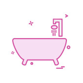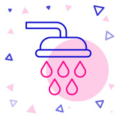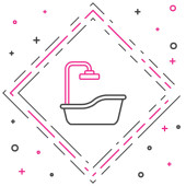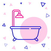 Wanna liniowa z ikoną prysznica izolowana na białym tle. Kolorowy koncept. Wektor