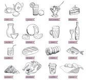 Zdjęcie "Ikony żywności wektorowej. Kolorowy szkic produktów spożywczych. Dżem, jogurt, ser gauda" może być wykorzystywane do celów osobistych i komercyjnych zgodnie z warunkami zakupionej licencji Royalty-free. Obraz jest dostępny do pobrania w jakości wysokiej rozdzielczości do 5760x3840.