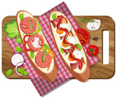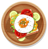 Widok góry śniadanie w naczyniu w stylu kreskówki odizolowane ilustracji