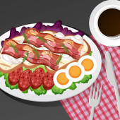 Zdjęcie "Widok góry śniadanie w naczyniu w stylu kreskówki odizolowane ilustracji" może być wykorzystywane do celów osobistych i komercyjnych zgodnie z warunkami zakupionej licencji Royalty-free. Obraz jest dostępny do pobrania w jakości wysokiej rozdzielczości do 5760x3840.