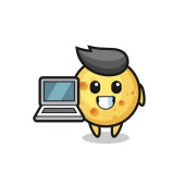 Maskotka Ilustracja smażone jajko z laptopem, ładny styl projekt koszulki, naklejka, element logo