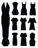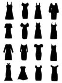 Zestaw z sylwetkami ubrań, sukienek, garniturów izolowanych na białym tle. Ilustracja wektora