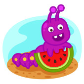 Wektor Dnia Dziecka, Gąsienica z Dziećmi i Tło Ziemi. Idealny dla dzieci Logo, Przemysł, Sklep, Nauka kolorów, Reklamy i Wiedza.